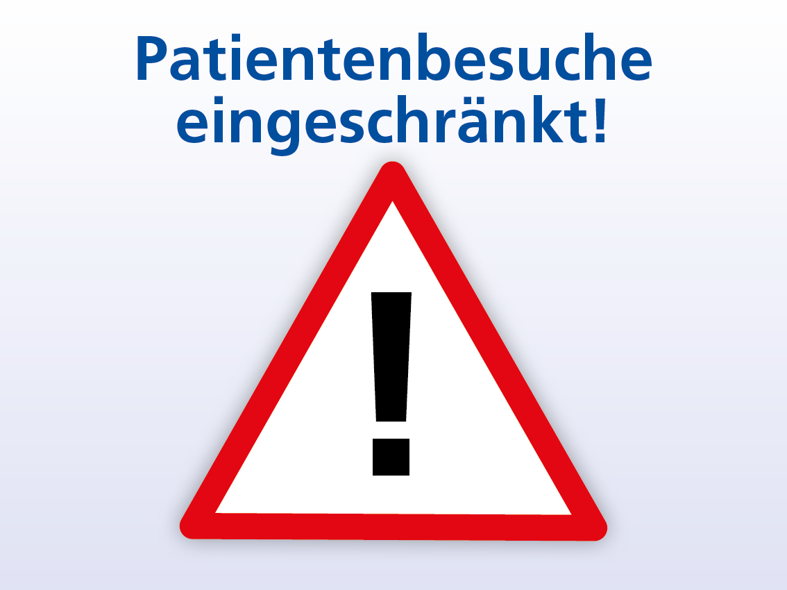 Info: Patientinnen und Patienten, die Termine für eine ambulante oder stationäre Behandlung haben, haben weiterhin Zugang zu unseren Betriebsstätten. Wir bitten gerade diese Patienten, notwendige Behandlungen nicht aus Sorge vor einer Corona-Infektion aufzuschieben. Die Folgen einer verzögerten Behandlung können weitreichend sein.