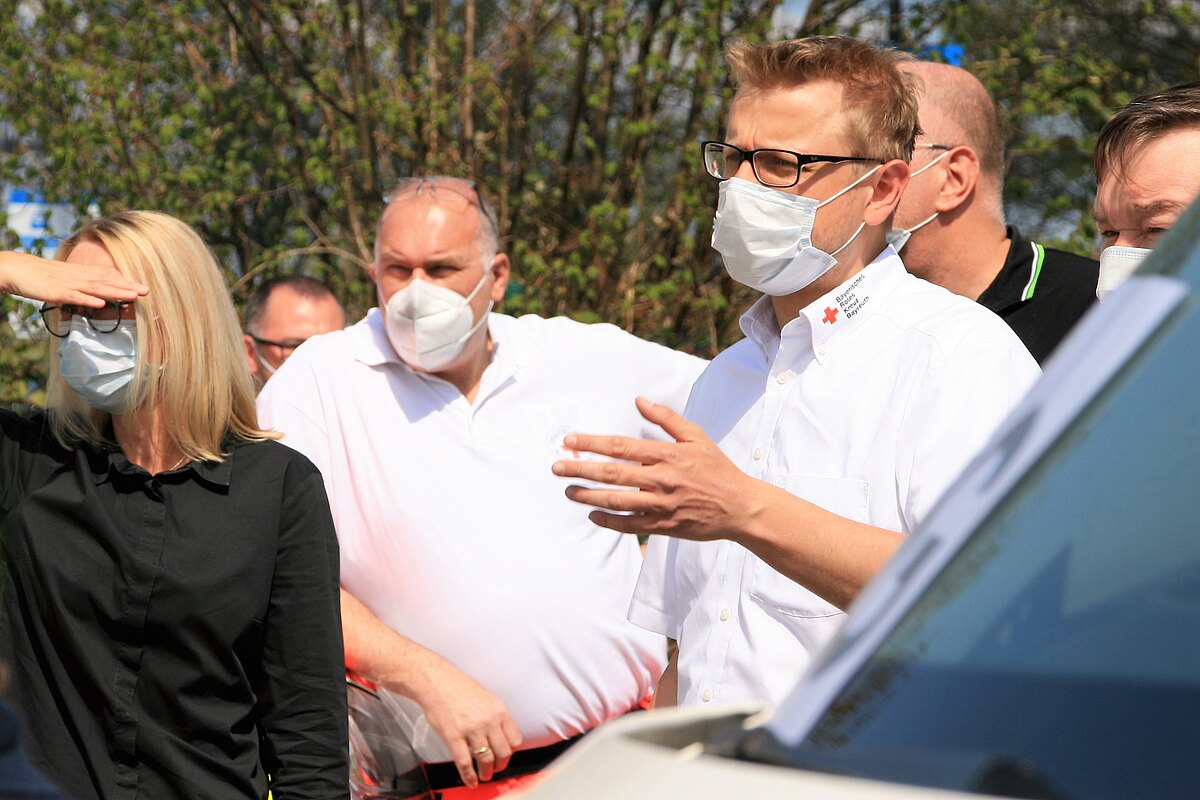 Freitagmittag, 13.30 Uhr, Treffpunkt Hubschrauberlandeplatz an der Kinderklinik. Die Rettungsfahrzeuge stehen akurat in einer Reihe. Sonnenbrillen in den Gesichtern der BRKler. Kreisgeschäftsführer Markus Ruckdeschel dankt ihnen für ihr Kommen, für ihr Engagement. Und sagt: „Heute suchen wir Antworten auf die Frage: Wo wäre Sand im Getriebe, wenn es wirklich ernst werden sollte?“