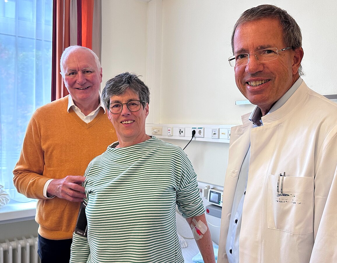 Der Zeitpunkt ist für Irmela P. nicht ideal. Das weiß sie. Dennoch war es für sie und ihren Mann keine Frage, die Therapie zu beginnen – auch wenn mögliche Nebenwirkungen nicht ausgeschlossen sind. Deren Auftreten wird in der Klinik engmaschig überwacht. „Wir wissen, welches Schicksal uns ohne Behandlung bevorsteht. Jede Möglichkeit, dies hinauszuzögern, ist ein Gewinn“, sagt ihr Mann Johann P..