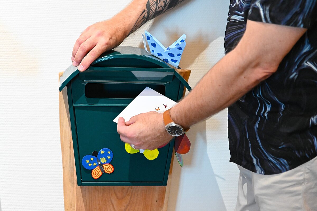 Der Schmetterlingsbriefkasten gibt Müttern und Vätern die Möglichkeit, ihre Gedanken und Gefühle niederzuschreiben und auf diese Weise den Tod ihres früh verstorbenen Kindes zu begreifen und zu betrauern – unabhängig davon, wie lange das Geschehene zurückliegt und zu welchem Zeitpunkt der Schwangerschaft sich der Verlust ereignete.
