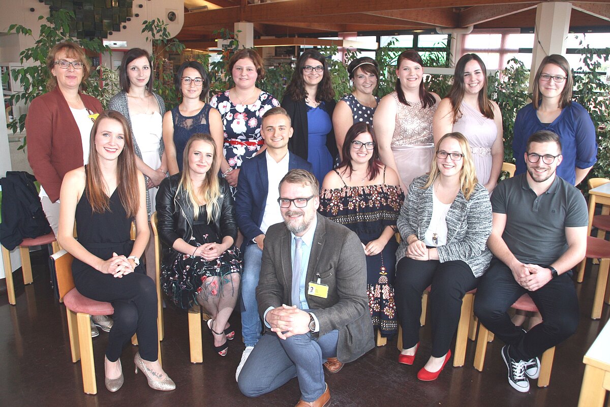 Hochqualifizierte und motivierte Pflegefachkräfte für die Klinikum Bayreuth GmbH: Zehn der 14 Absolventinnen und Absolventen des Kurses 2014/17 der Berufsfachschule für Kinderkrankenpflege, die jetzt ihre Abschlusszeugnisse erhalten haben, bleiben an der Klinikum Bayreuth GmbH und stärken die Pflege in Oberfrankens einzigem Krankenhaus der maximalen Versorgungsstufe.