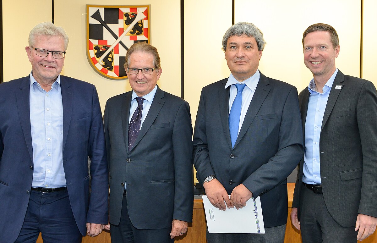 Die Entscheidung fiel im Aufsichtsrat. Dessen Vorsitzender Oberbürgremeister Thomas Ebersberger, Klinikum-Geschäftsführer Dietmar Pawlik, Chefarzt Dr. Claus Steppert und der Vorsitzende des Krankenhauszweckverbandes, Landrat Florian Wiedemann (von links), gehen zuversichtlich in die neue Kooperation.
