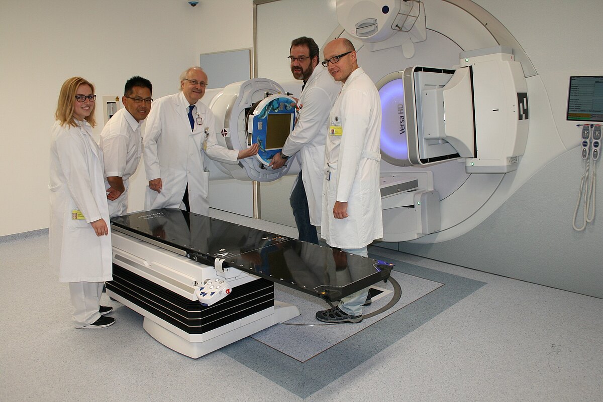 Mit der Inbetriebnahme eines neuartigen Messgerätes – einem Detektor zur Dosiskontrolle bei intensitätsmodulierter Strahlentherapie – setzt die Klinik für Strahlentherapie der Klinikum Bayreuth GmbH in puncto Bestrahlungssicherheit einen völlig neuen Trend. Als weltweit erste Klinik nahm die Bayreuther Strahlentherapie in diesem Monat zwei der innovativsten Messgeräte der Firma IBA Dosimetry GmbH in den Patientenbetrieb. Ein drittes Gerät setzt die Klinikum Bayreuth GmbH am zweiten Standort der Strahlentherapie am Klinikum in Kulmbach ein. Das weltweit führende Unternehmen auf diesem Gebiet entwickelte das 75.000 Euro teure Hightech-Messgeräte DOLPHIN® im mittelfränkischen Schwarzenbruck bei Nürnberg. Die einfache kabellose Handhabung des innovativen Detektors und die höhere Datenauflösung vereinfachen die Qualitätskontrolle im Vergleich zu herkömmlichen Messverfahren deutlich.