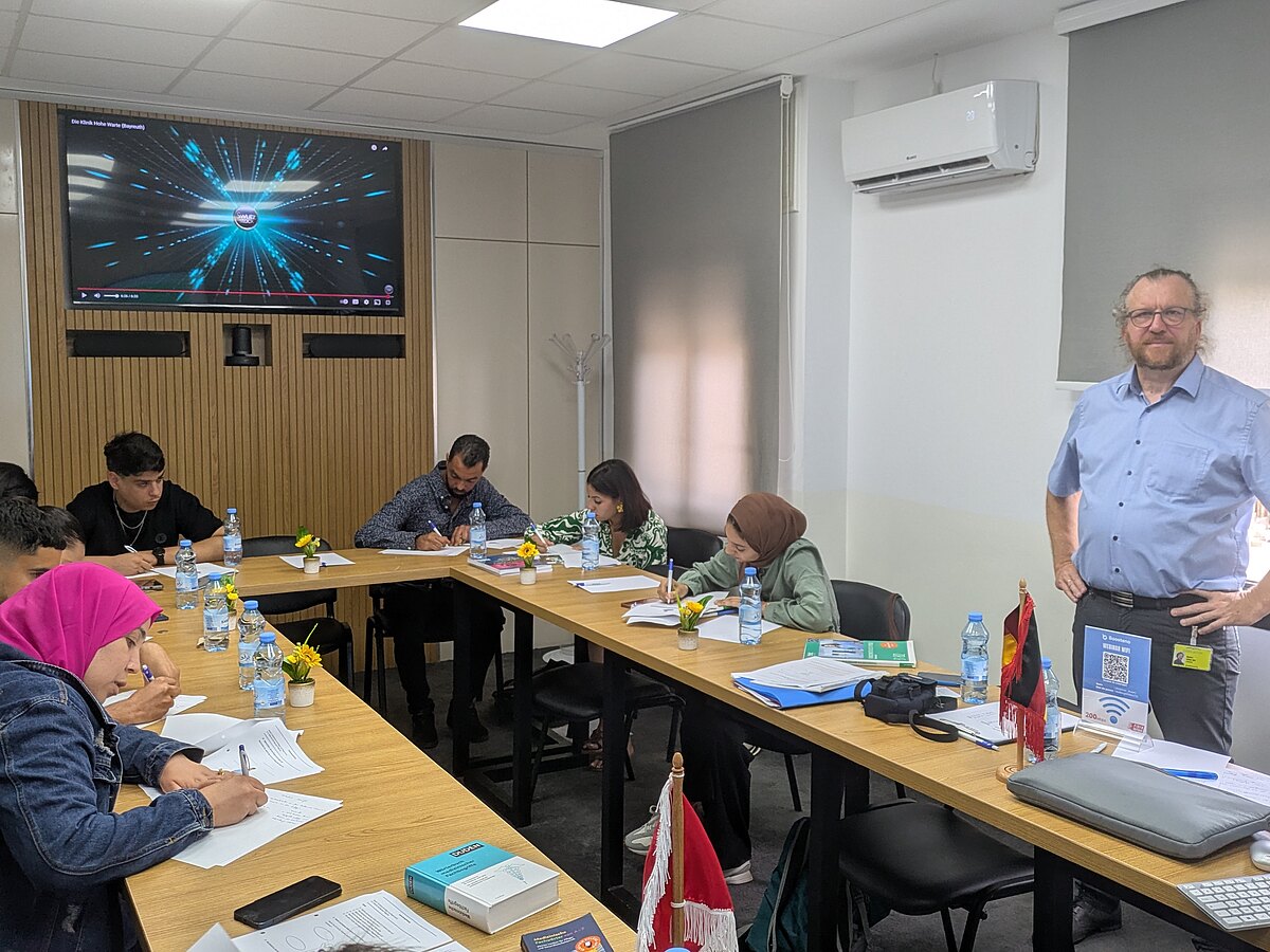 Vor Ort führten Eva-Maria Völkel-Nijs, Integrationsbeauftragte der Klinikum Bayreuth GmbH, und Stefan Höfer, Lehrer und Kursleiter an der Berufsfachschule für Pflege, Gespräche und Sprachtests durch. Ziel war es, die nächsten Schritte für eine erfolgreiche Integration in das deutsche Gesundheitssystem zu planen.
