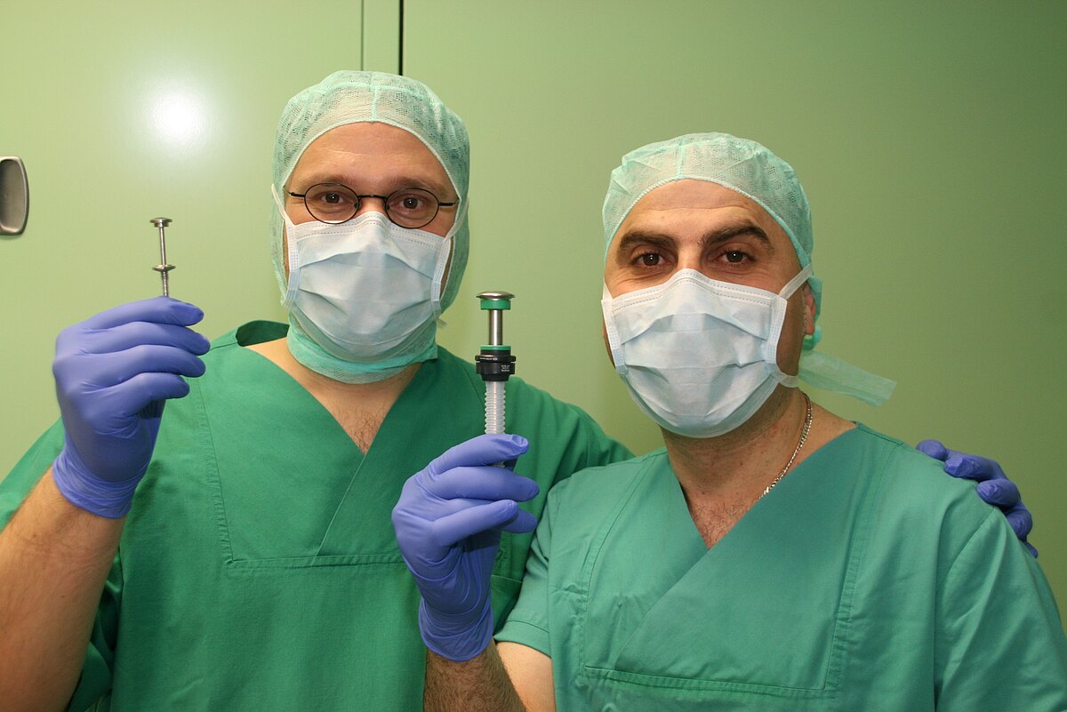 Die Instrumente in der Thoraxchirurgie werden filigraner. Dr. Bernd Linsmeier (links) und Dr. Mohammed Ibrahim sagen: Damit genesen Patienten schneller.