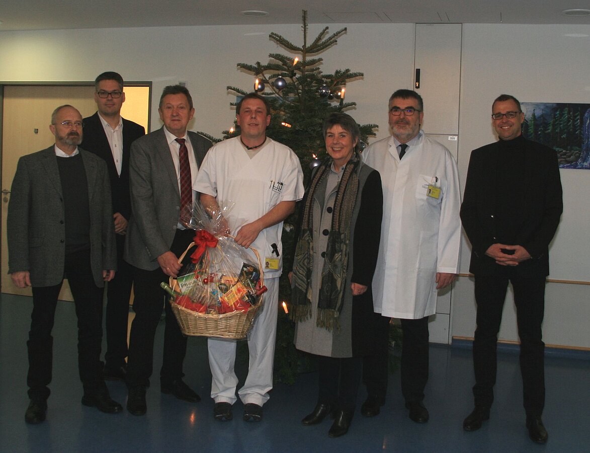 Sie nehmen sich Zeit für jene, die sich am Heiligen Abend und an den Weihnachtsfeiertagen im Klinikum und in der Klinik Hohe Warte um ihre Patienten kümmern: Brigitte Merk-Erbe, Oberbürgermeisterin und Aufsichtsratsvorsitzende der Klinikum Bayreuth GmbH, und Landrat und stellvertretender Aufsichtsratsvorsitzender, Hermann Hübner, haben stellvertretend für alle Beshcäftigten den Pflegeteams der Stationen 14 und 24 im Klinikum sowie der Station 6a in der Hohen Warte Weihnachtsgrüße und Präsentkörbe überbracht. Merk-Erbe und Hübner dankten den Mitarbeiterinnen und Mitarbeitern für ihr großes Engagement, das auch an den Feiertagen nicht nachlässt. Geschäftsführer Dr. Joachim Haun, der Ärztliche Direktor Prof. Dr. Thomas Rupprecht, sein zweiter Stellvertreter Dr. Hans Axel Trost, Pflegedirektorin Angela Dzyck, ihr Stellvertreter Wolfgang Erler und Thomas Reihl, Leiter der Allgemeinen Verwaltung, wünschen alle Mitarbeiterinnen und Mitarbeiter der Klinikum Bayreuth GmbH ein frohes Weihnachtsfest und ein gesundes neues Jahr.