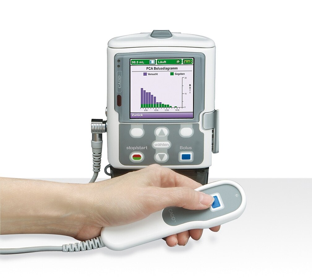 Unserem Akutschmerzteam stehen 16 smiths medical CADD - Solis V 3.0 Schmerzpumpen der neusten Generation, 10 CADD Legacy Pumpen und 4 Sufentanil-Sublingual-Tabletten-Systeme zur Verfügung.