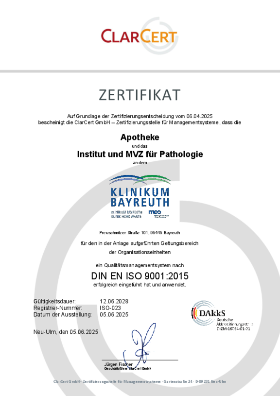 - Molekularpathologie (Hier finden Sie den Anforderungsschein (PDF, 167 KB))