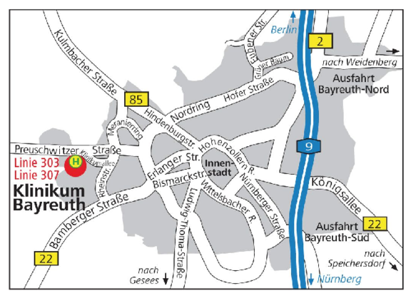 Die (tages-)stationäre Aufnahme erfolgt auf der Ebene -1 auf Station 12A (Schwesternstützpunkt) für gesetzlich versicherte Patientinnen und Patienten. Tagesstationäre Patienten sollten sich bitte pünktlich um 7 Uhr dort einfinden. Telefonische Terminvereinbarung zur stationären Aufnahme unter der Nummer 0921 400-5370.